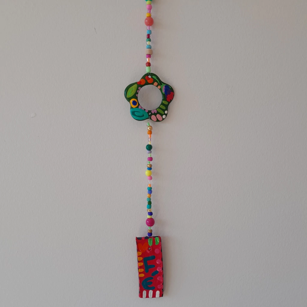 Pingente, mobile decorativo, enfeite, planquinha Fé rosa pintado à mão